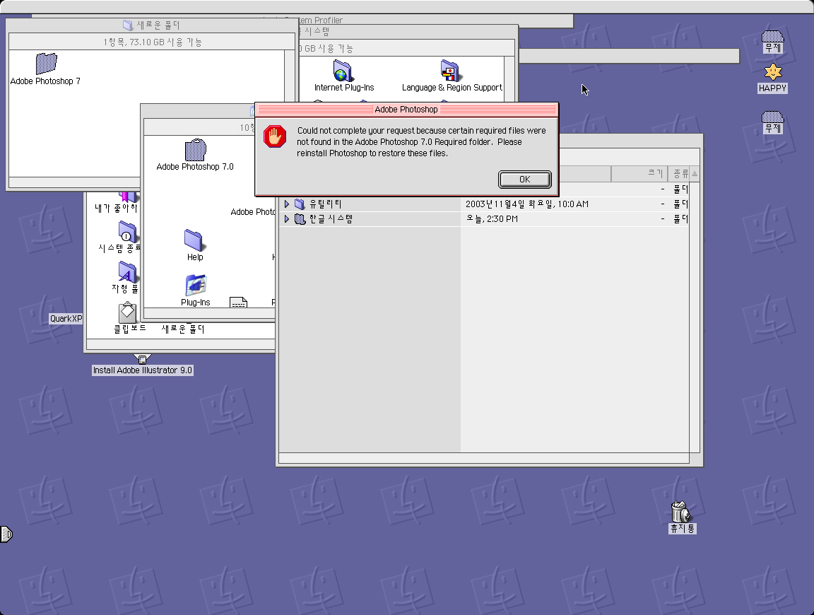 맥9.2 에서 포토샵7.0 을 설치하는데 오류가 떠요 ㅠ.ㅠ